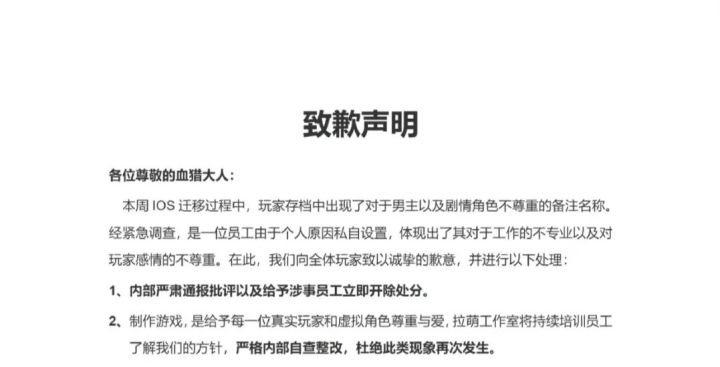 省流总结:因为微信小程序被举报,官方让玩家把数据迁到APP,结果配置错误,导致内部某个员工给游戏角色的备注显示给玩家了,游戏里,可攻略男角色一个被备注成“版本2110”,另一个是辱骂性词汇,重要女NPC也被标了侮辱性词汇。