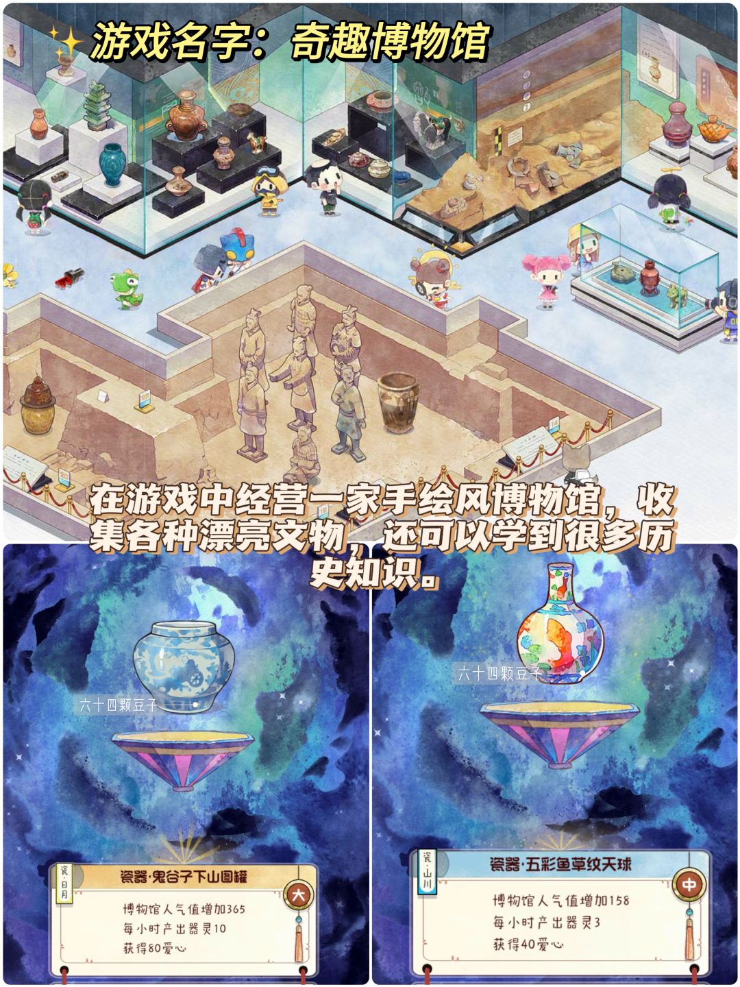 简介:在游戏中经营一家手绘风博物馆,收集各种漂亮文物,还可以学到很多历史知识。
