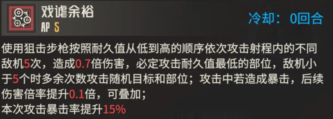 - 【戏谑余裕】技能可直接提升15%的暴击率