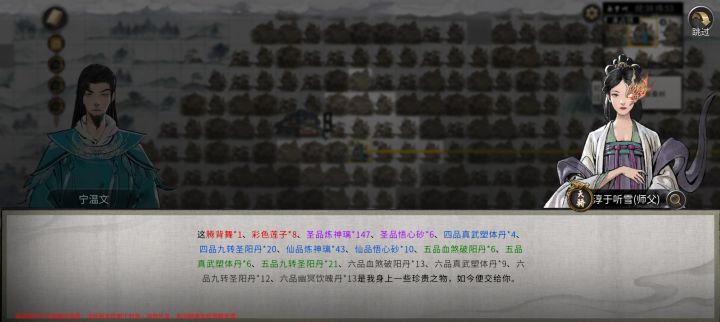5,触发事件后,你会发现只能给师傅送礼,因为只剩残魂,然后给师傅送2枚莲子,等1-2月,师傅就会复活,然后迅速用双鱼佩绑定师傅,你就获得了一个3个月使用一次的打手!而且这个打手如果性格是无私和护短会时不时给你送突破材料,功法,坐骑,装备,药材,会拉你打高阶副本。尽量sl一下。