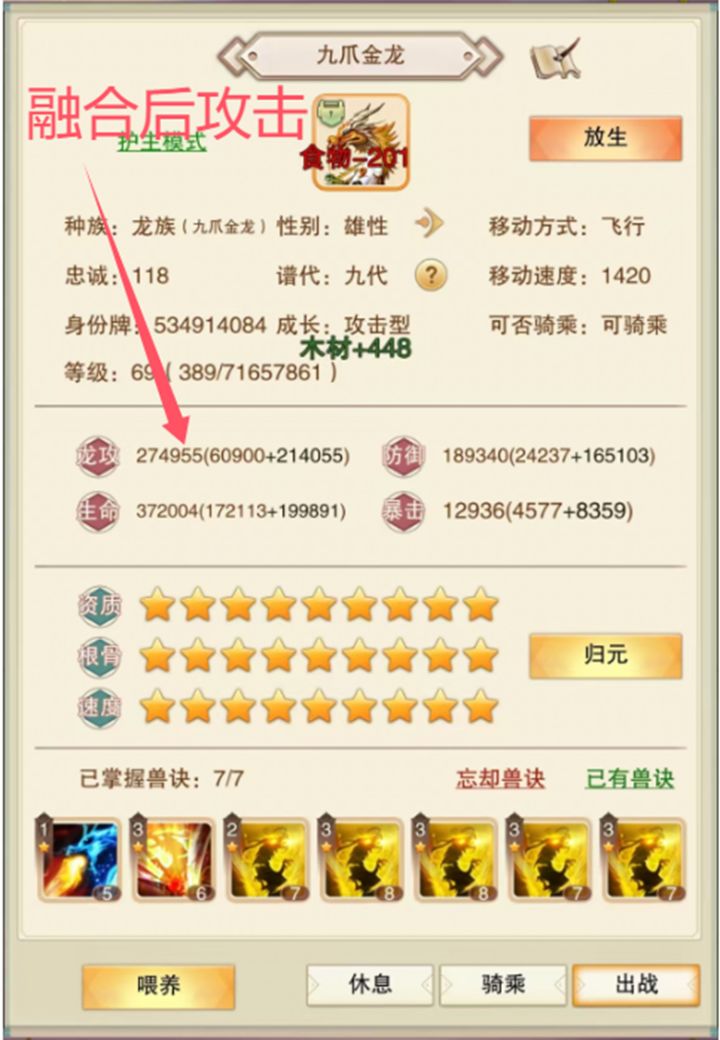 融合新增血脉后的攻击计算方法,有图为证。