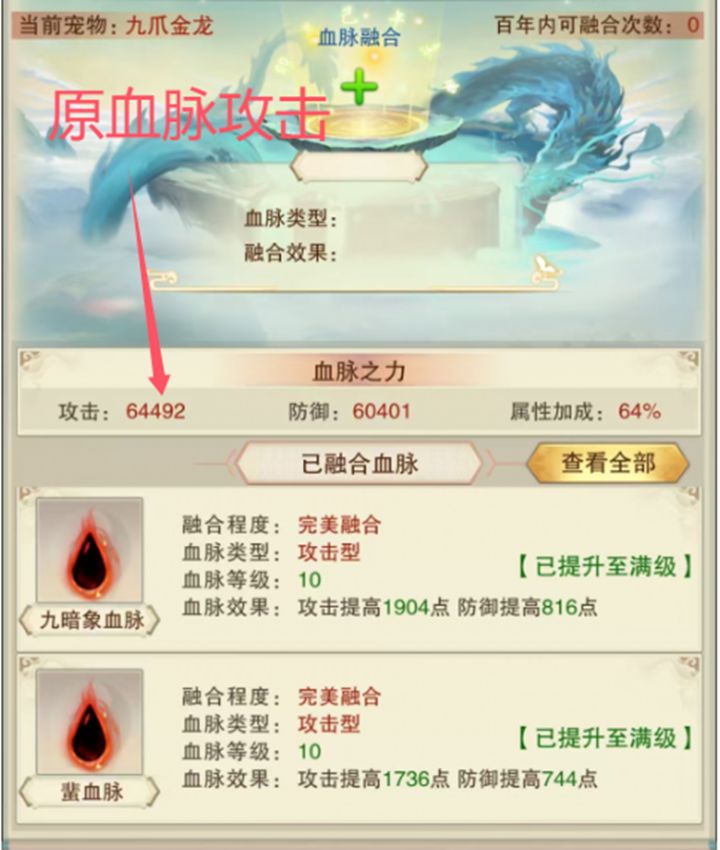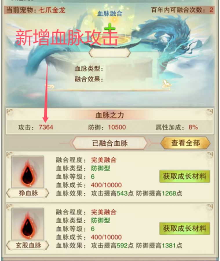 已证实已有完美血脉宠物融合新增血脉宠物的攻击计算公式是对的。有图为证。