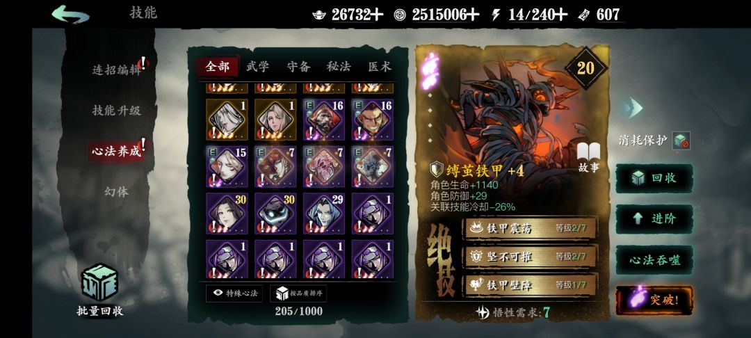 能帮忙搭配一下技能链和心法吗我现在一脱加杀意的套装技能杀意就不够用,装备现在也不知道干嘛,心法就一个紫铁甲,火刀精研点啥也不知道
