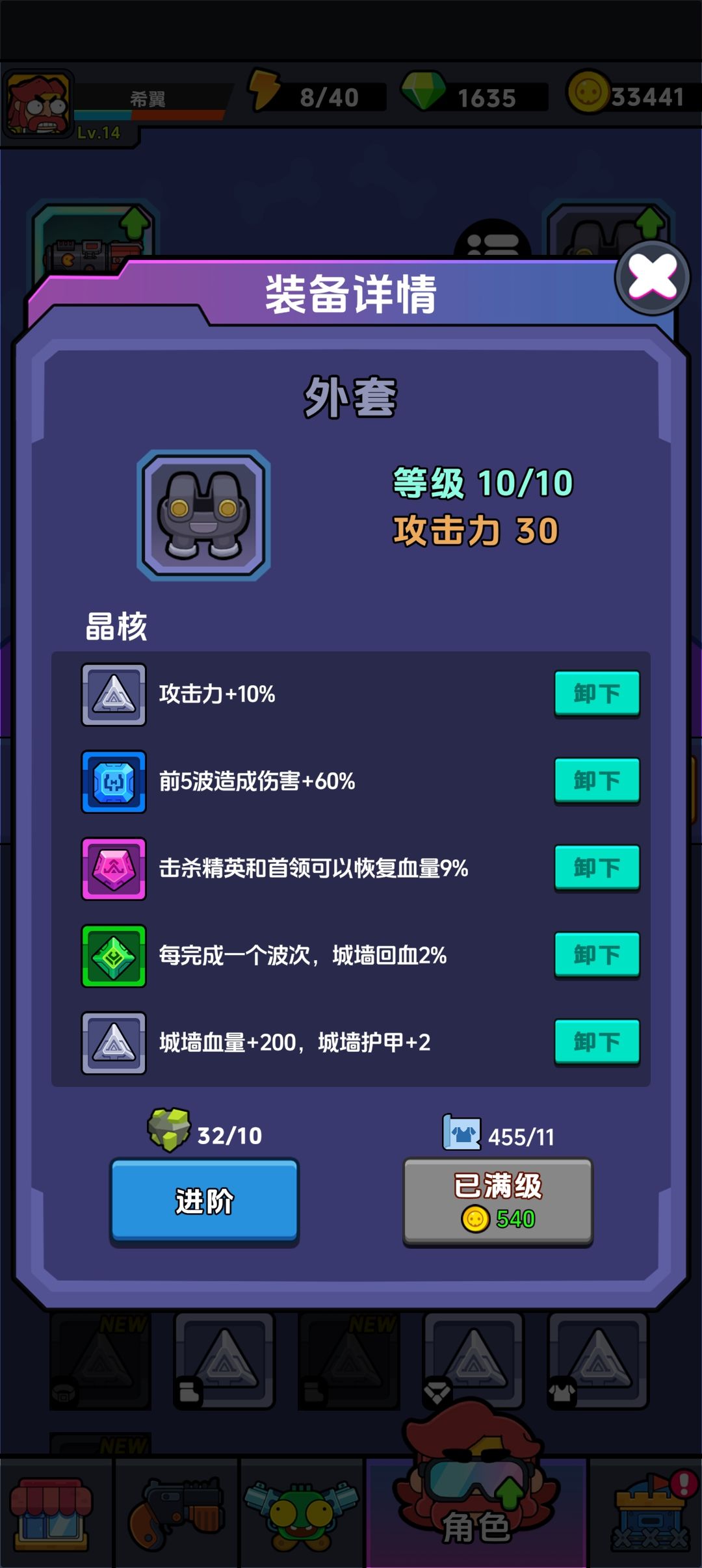 有些减敌人攻击,城墙加血加防还有杀boss和精英回血的宝石要留着,75关的boss把我打蒙了,变异水母,分裂后的远程攻击0帧起手。