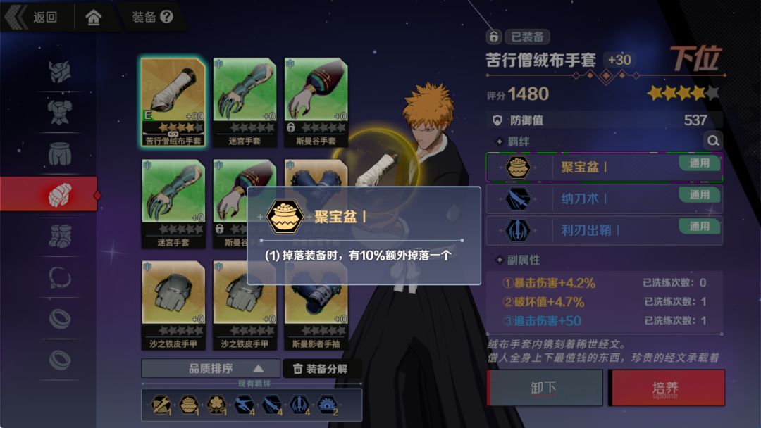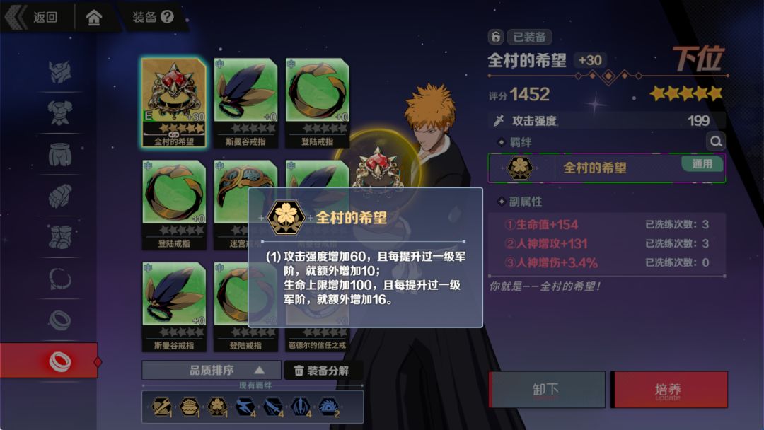 每件装备都可以用升星来解锁羁绊,凑一身好羁绊战斗力那是蹭蹭涨