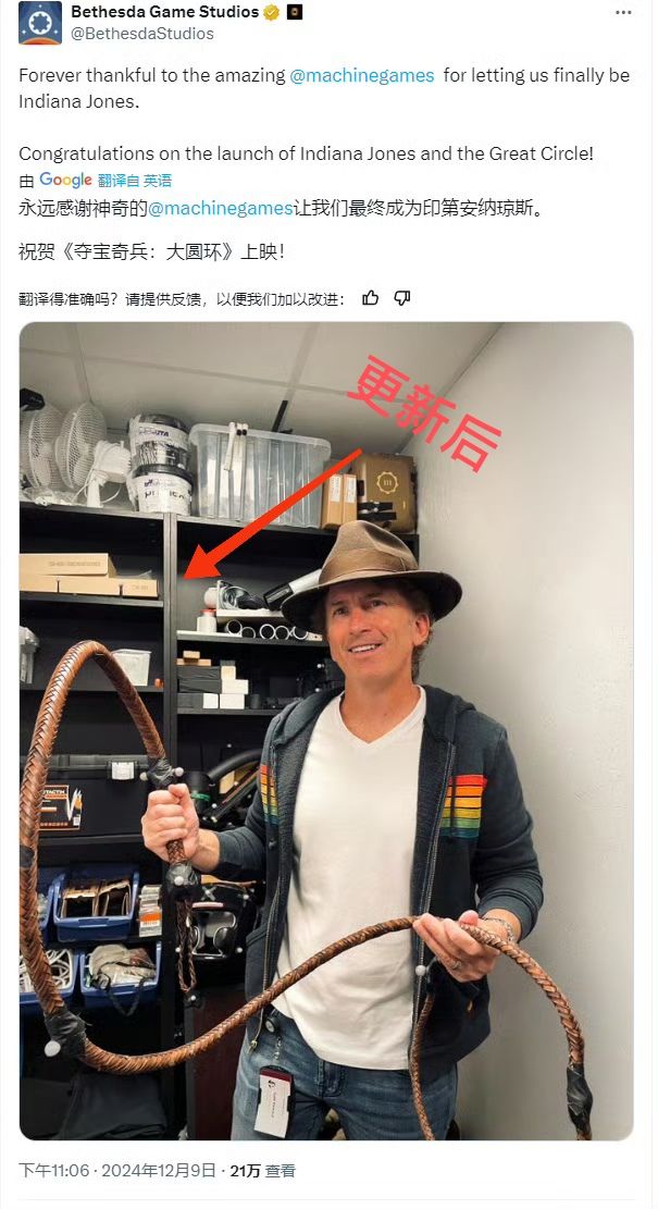 12/9号,为庆祝《夺宝奇兵:古老之圈》发售,贝塞斯达官方发布了制作人陶德·霍华德照片❗❗❗