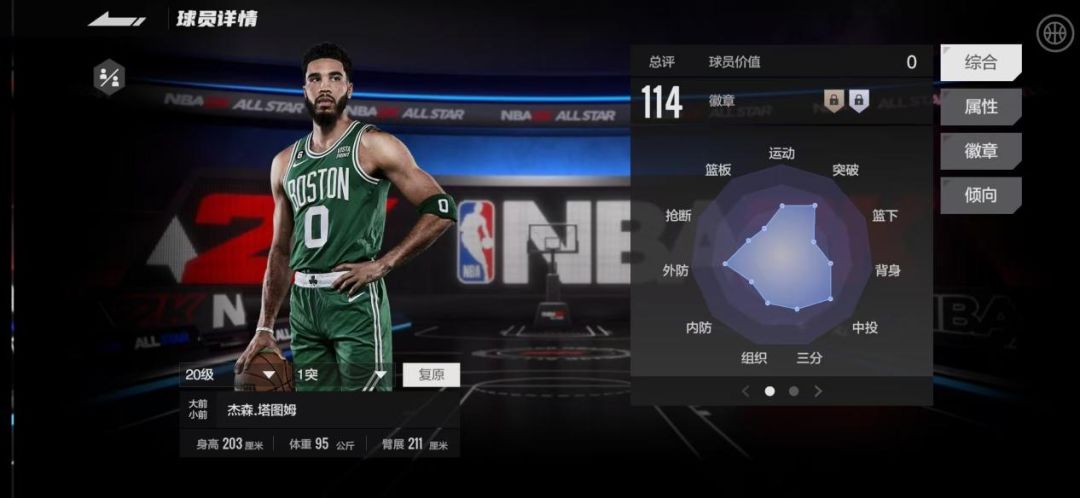 杰森.塔图姆(传奇耐杀王,投篮包出手速度快,升高模型大数值也是顶级)