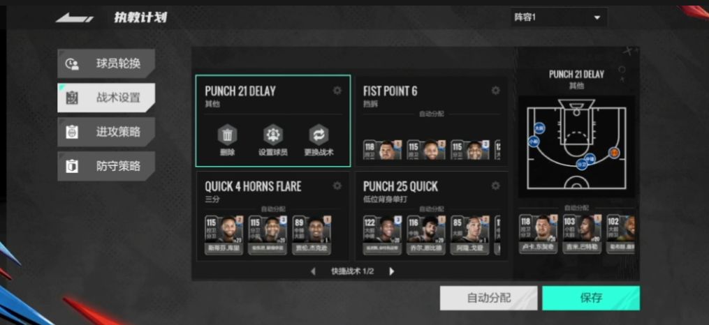 战术的调整,我们可以在阵容的执教计划中修改