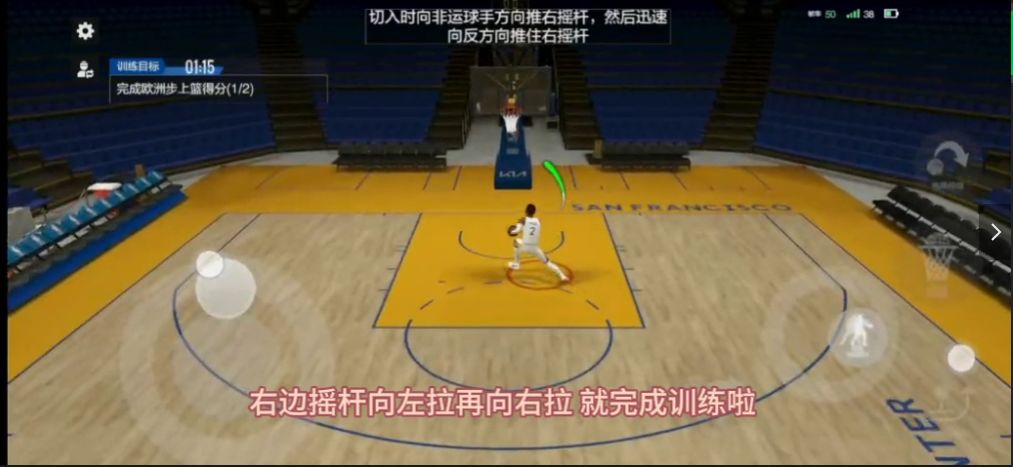 背打:右边摇杆轻按2次(轻点时注意,手指不能滑动,不然不会进入背打状态),进入背打状态(重点是进入背打状态,如果一直没有进入,可以操作左边摇杆让球员背靠对手),把对方推至篮下,左边摇杆松开,右边摇杆直接往右上一拉,就完成训练啦。