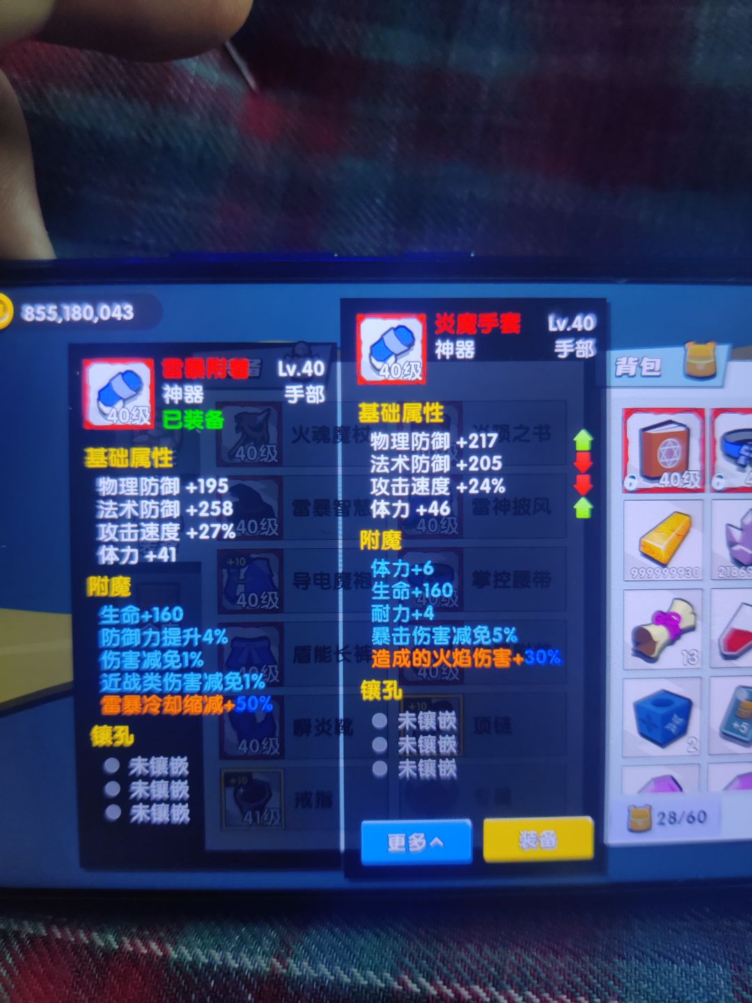40级装备强化5-1.6-2.7-3.8-4.9-5升10共用15。分解反6个。所以强化没搞到最牛的先尽量别强化,石头难获取。