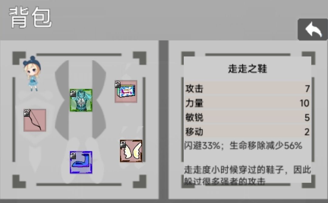 五星级(强力鞋子):灵巧之鞋(普通难度的神)、银河战靴、红色滑板(2移动2偷窃)、奔狼之靴(单主角前期神器)、机械履带(最高移动)、魔导师之鞋(技能增伤)、无影鞋(低闪避)、喷气动力装置(飞行)、星魂之鞋、机甲之鞋(免晕免冰)、时间之鞋(状态真伤)、黑之鞋(生命上限)、原虫之鞋(中闪避)、黑虎之鞋(高敏锐且3移动)、噩梦之靴(同黑之鞋)、天毒鞋(红色滑板的上位替代)、独游之鞋(稀有技能)