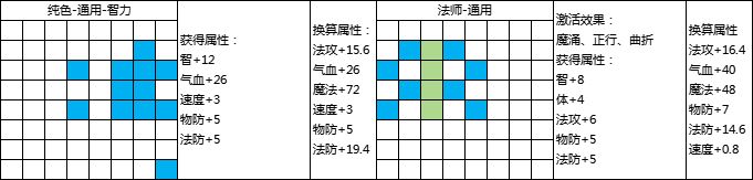 不论是物理,还是治疗,封印,都有补速度的时候,这边也提供两套速度的摆法,一套是纯色,一套是有悟性图案的,大家自行选择,数值都标记好了,各取所需
