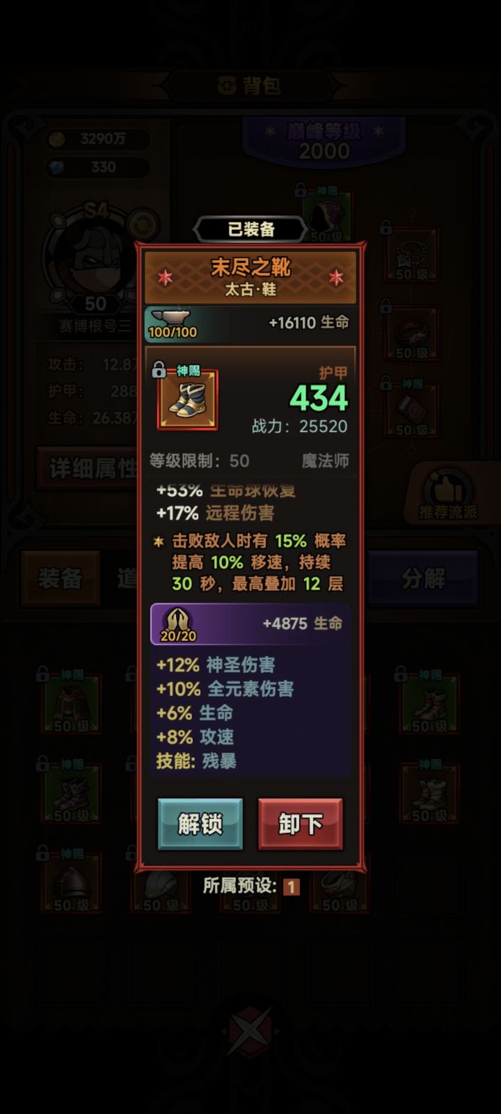 注意了,换的这几个装备只需要洗出残暴即可,10残暴还是必须的。有10残暴加成才够一路秒杀。
