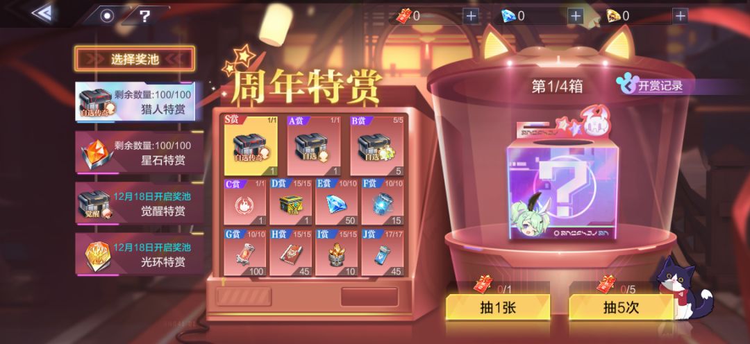 2.5周年庆典期间,指挥官可前往【周年特赏】中参与活动,指挥官参与急速狂飙、周年试炼等玩法中获得周年特赏券,使用周年特赏券参与抽奖,可获得自选传奇猎人、神耀星石、剑神觉醒材料自选宝箱等豪华奖励!还可获得周年庆头衔、称号、头像框等专属外显奖励!欢迎指挥官前往参与!