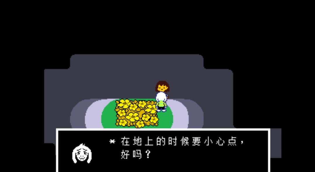 游戏刚开始,便为我们简单介绍了世界观:在很久以前,世界由人类和怪物统治,最后人类赢得的胜利,并将怪物封锁到地下,使用结界将两个世界隔离。而我们扮演的角色:一个意外掉落地底的人类小孩,来到了这个充满了怪物的地下世界,会发生一系列怎样的故事呢?