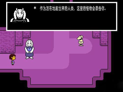 突然,一个身着长袍的羊头人身怪物出来,打跑了小花,这位便是传说之下中倍受玩家喜爱的人物:托丽尔,由于外观是以羊为原型,所以也叫做“羊妈”。后来,羊妈帮助我们学会了战斗,解谜等一系列基础知识,并将我们带入她的家中,打算将我们成为她的孩子。