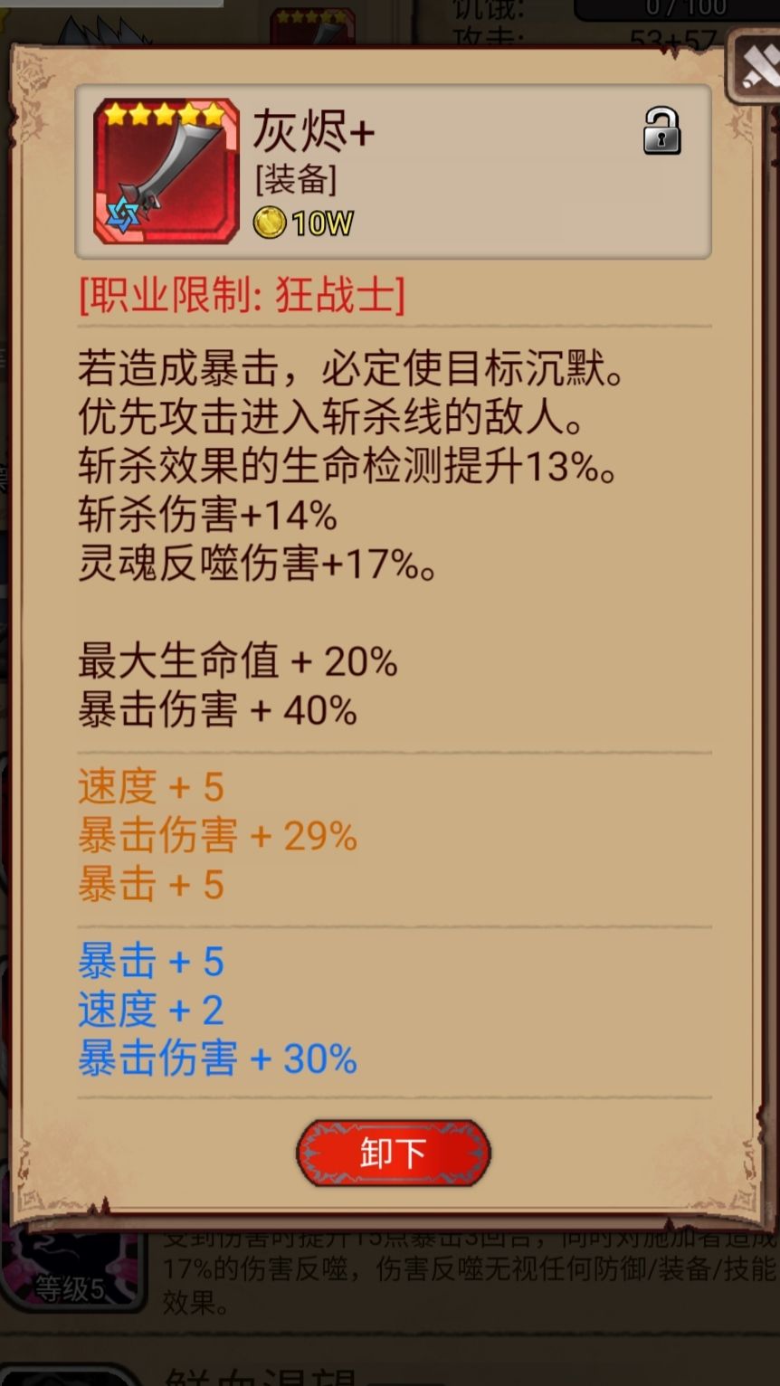 当装备养成度很高时,狂战就可以在遗忘吃灰成为下水道了,就为其他场景服务了,可以把速度词条特质给删掉了