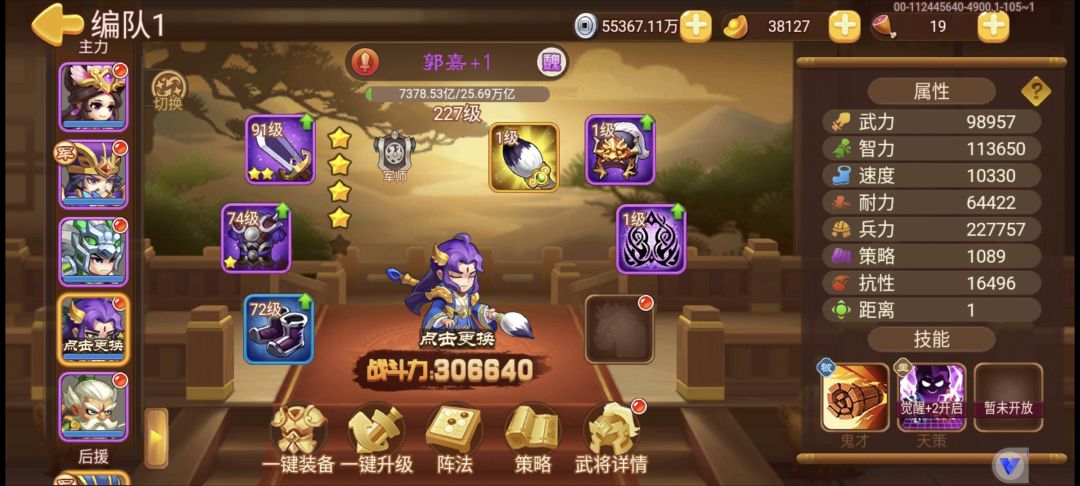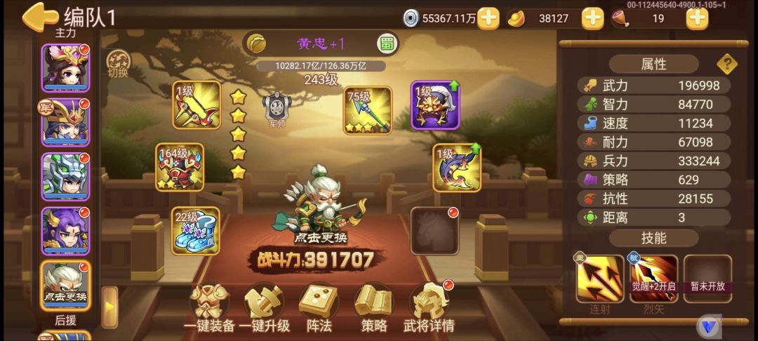 如题,130多天的号没有穷奇,袁术感觉也不行,之前鬼套齐了,多买了一件弓,貂蝉唯一一件紫金,马超司马懿黄忠都是2鬼撑过第一回合,郭嘉裸套献祭,一队目标杀死夏侯渊,多拉几个下水更好,本来黄忠用董卓代替的,后来发现这次北伐只有普攻和百分比有伤害,董卓不在二队伤害不够,黄忠主要第一回合放个陷阱给夏侯就不亏,二队因为风套不够,闪避不足,用了双控制+3乐进+2姜维,主输出孙策普攻和董卓百分比,诸葛叠上来治理之后就开刃普攻,其他时候加血