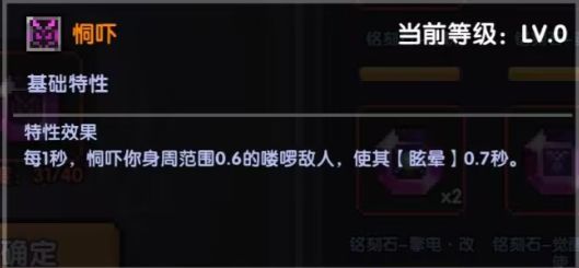基础特性:恫吓;恫吓的定身可以吃到本次大秘境的50全伤buff,等级越高范围越大(移动打的时候是不能全程定死的,分布计算可以但是不适用群秘)(正常拾取范围是1,可以参考一下),觉醒等级等等。