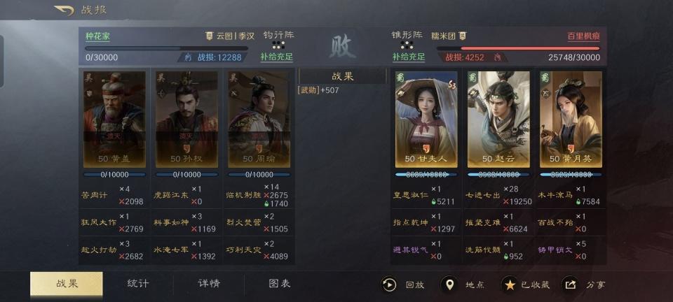 特别鸣谢游戏ID名为“百里枫痕”的玩家朋友,给本文提供了宝贵的创作素材。他利用麾下的赵云、甘夫人和黄月英摆出锥形阵,半场时间便掰弯了对面周瑜、孙权和黄盖组成的苦肉弓。对面是周瑜黄盖双核输出,这边就只有赵云一个人能打,如何倒反天罡,且看下文分解!