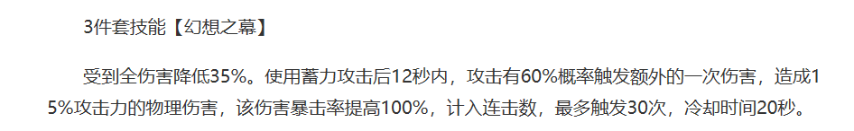 三件套技能“幻想之幕”,卡夫卡的著作大都是现实中不存在的虚幻世界,比如《审判》中的那个法庭,现实中怎么可能存在如此荒诞不羁的机构,所以这种机构也就只能停留在幻想这一步了。由于卡夫卡不幸的童年,因此他的创作大都是为了表现自己对现实生活的负面情绪,这就直接导致了卡夫卡的大部分著作必定不能直接反映出现实,而仅仅只能是映射出现实中的一部分,毕竟“艺术来源于生活,高于生活。”