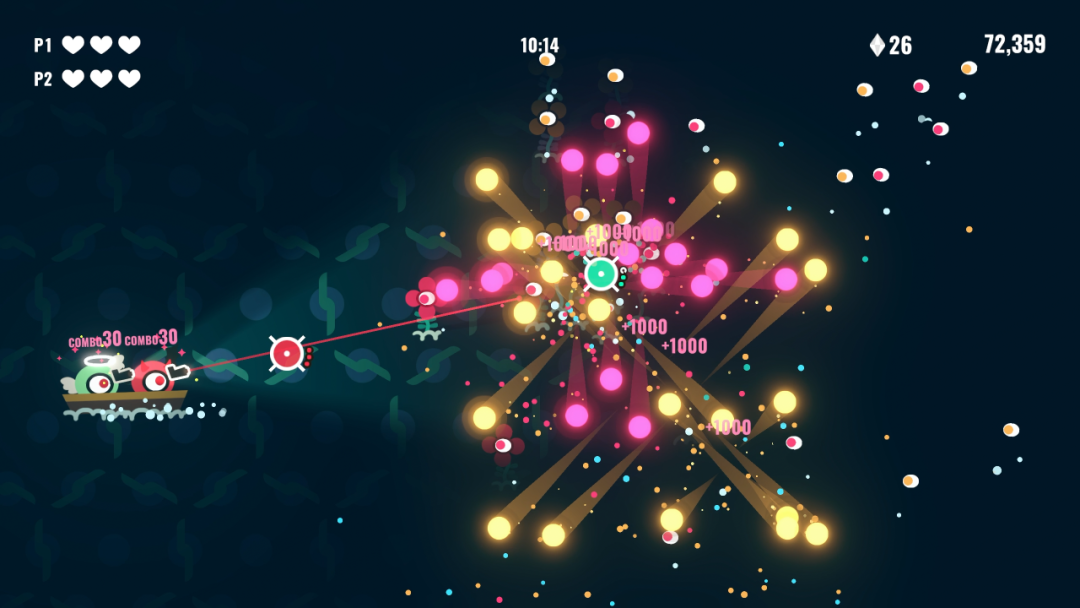 比如高风险高回报的连击机制,在连击三十次之后,玩家会得到明显的爆炸反馈和分数倾斜。接下来的每一枪都得深思熟虑,一朝miss就前功尽弃。