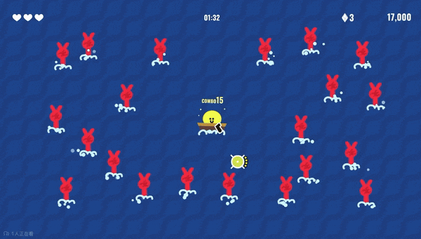 随后他们发现这样做策略深度不够,于是引入了高风险高回报的连击机制。连击越高攻击范围越大,如果没命中连击清零。这时,《枪豆人》最核心的玩法就确定下来。