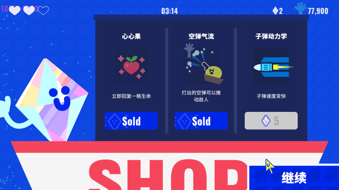 如果玩家在某关连续失败,商店会刷新出一个超强力的道具,这个道具会让全队生命上限+2,但是所有玩家会降低较多分数,连续失败次数越高,越有可能刷出这个道具。