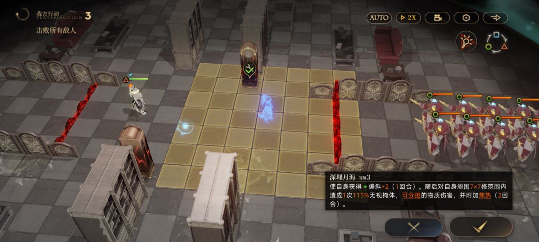 走到这里(保证警戒范围不在召唤位置留小怪下轮再动)