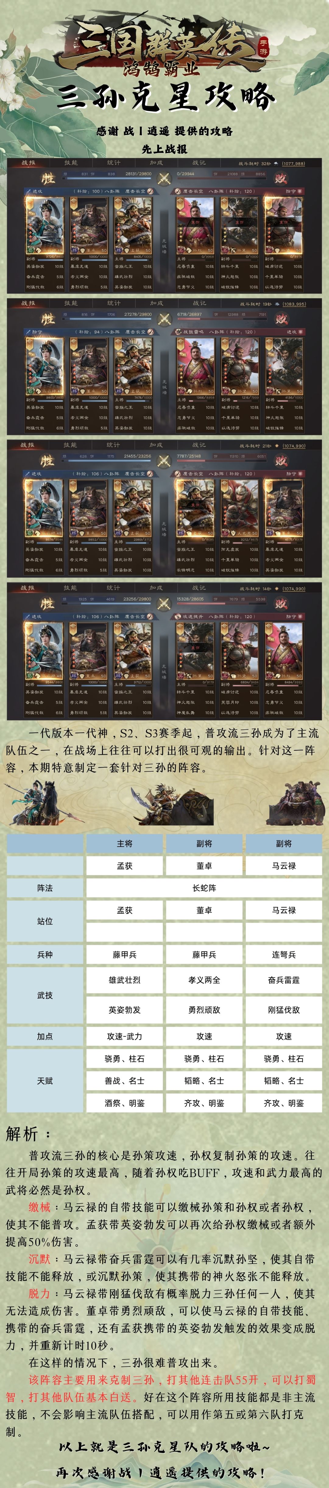 【武将攻略】你不准普攻!三孙克星队来袭!