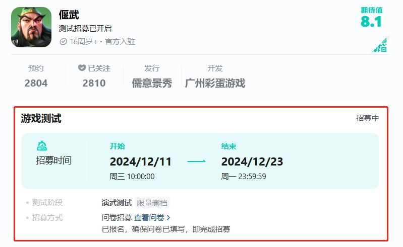 1、前往Tap《偃武》游戏首页填写问卷即可获得参与测试的资格;