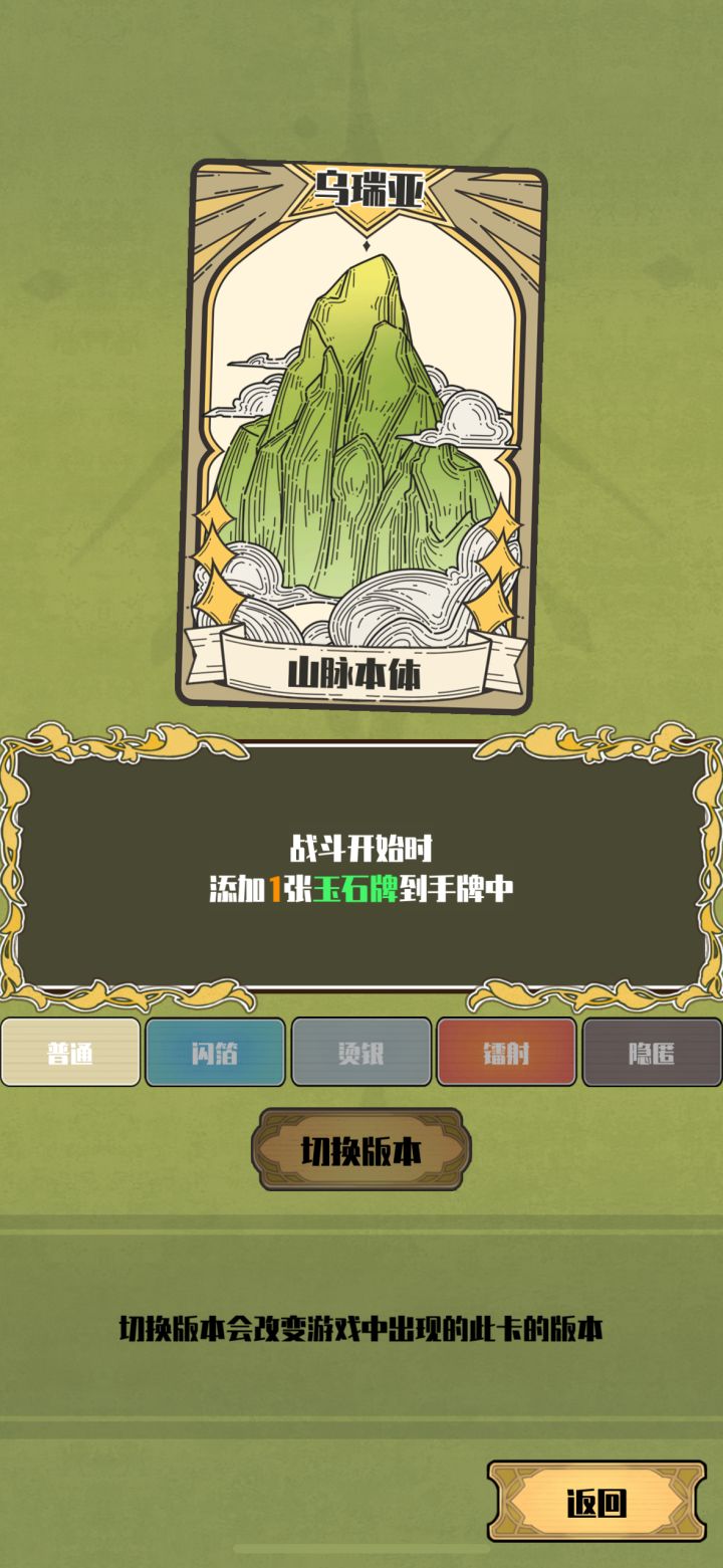 1.山脉本体:每次战斗印一张玉石牌进入卡组。