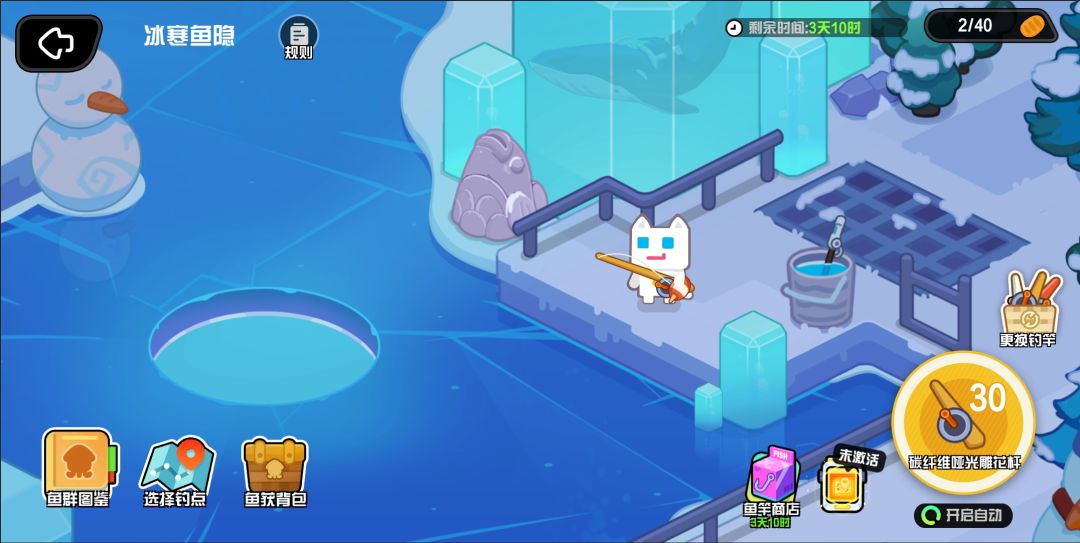钓鱼小游戏现已开放!解锁鱼类图鉴即可提升全体英雄属性加成,装备不同种类鱼竿、在不同点位垂钓都有不同的效果;在绿色区域收杆,更有概率获得双倍收获;其他更多内容玩法正等候喵友们挖掘,欢迎更新后上线体验。