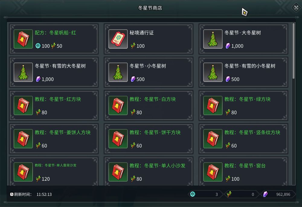 行会接待员的冬星节商店听说刚进了一批好货。感兴趣的冒险者赶紧来选购吧~