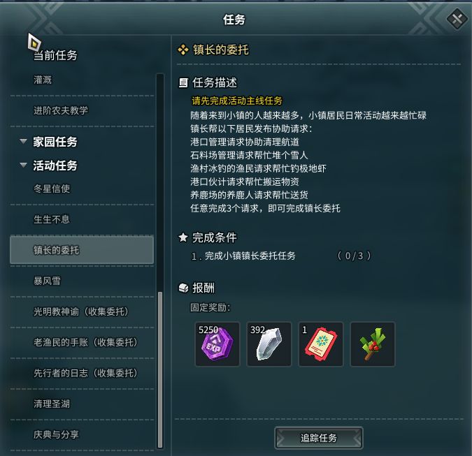 节日日常任务每天小镇上都会有一些任务可以领取,可以在任务栏那边查看与领取,完成会有丰厚的奖励哦。