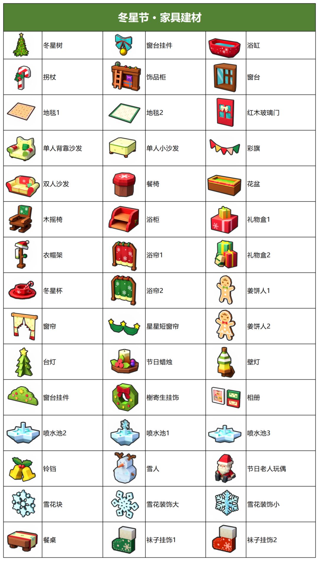 通过收集节日材料槲寄生枝条(通关冬星秘境获得),可以于工匠台制作各种可爱好玩的冬日建材哦!