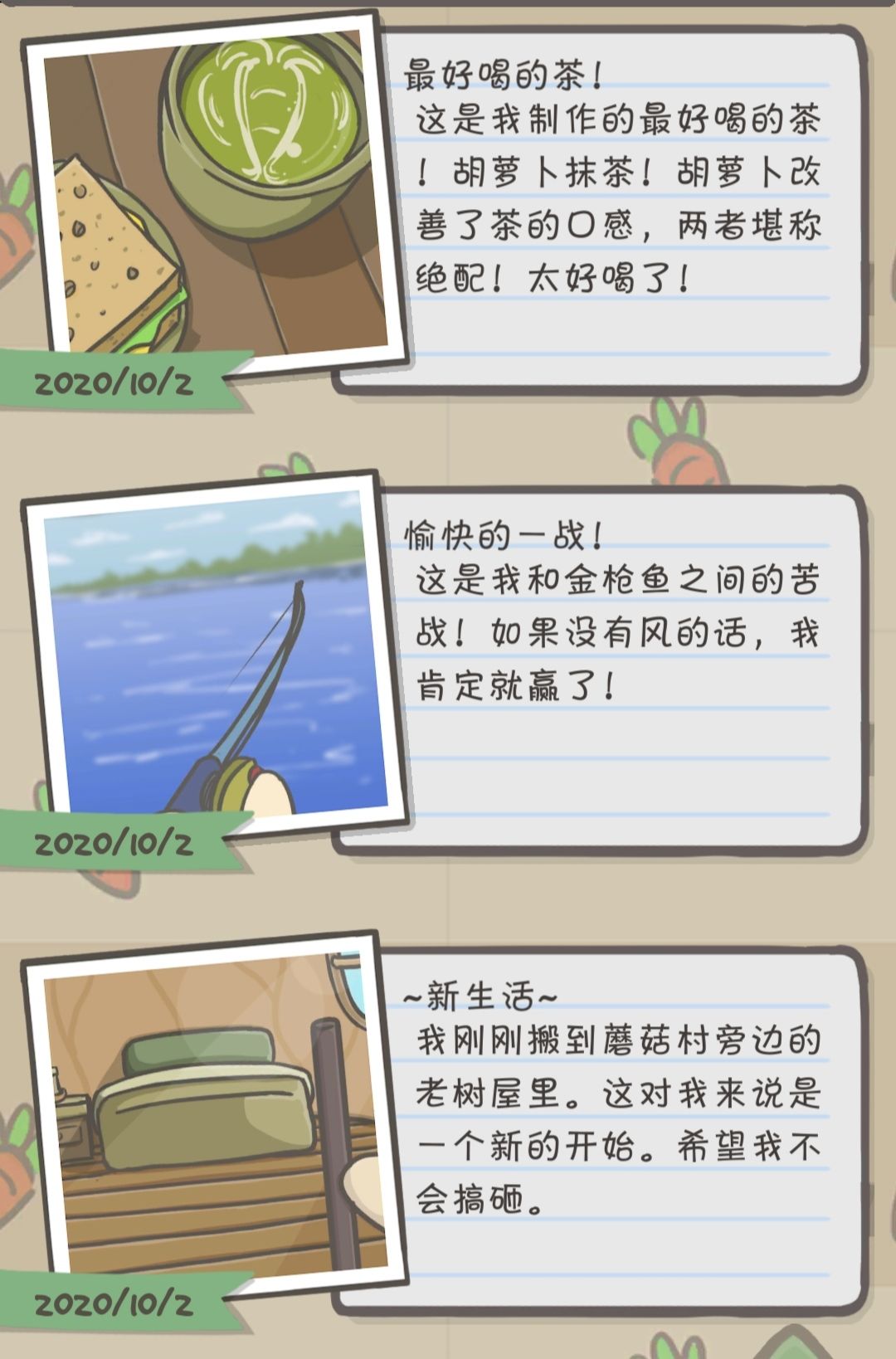 这两张是昨天的日记,玩的时间不长,也没搞清楚玩法,就只在蘑菇村活动~