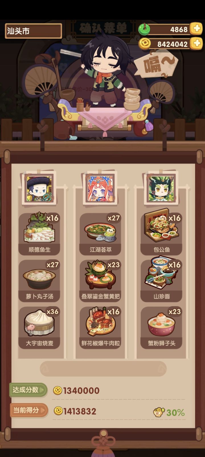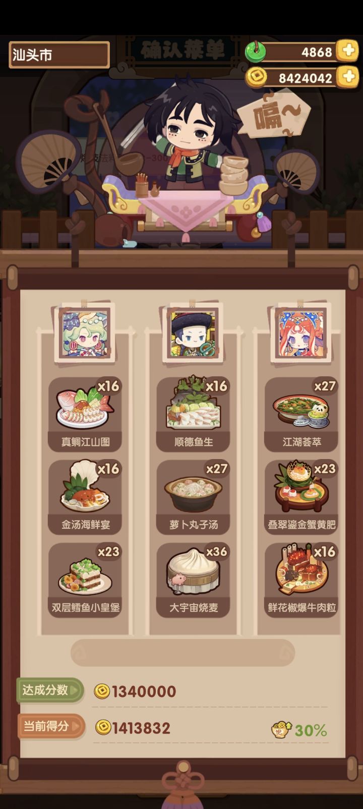 交作业了!菜谱有些可以替换一下,分数可以更高,我的虾材料没多少了,不想用了,所以选择了其他库存高的!分数能过线就跟!没过的参考下!