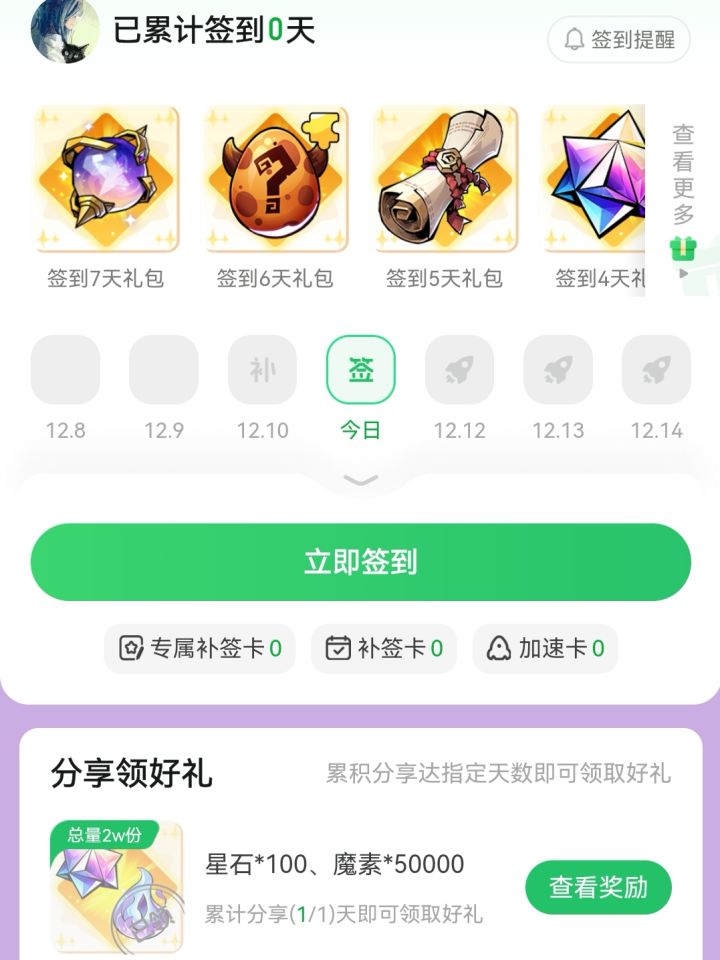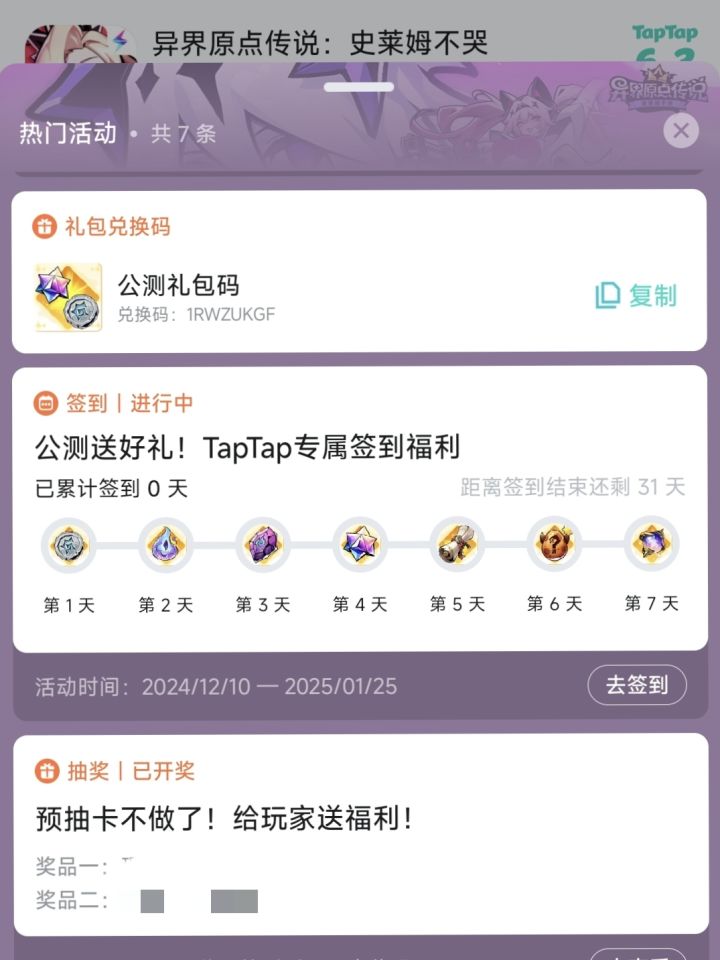 ❤️TapTap游戏首页可得:签到七天礼包和公测礼包(如图二),共计8个