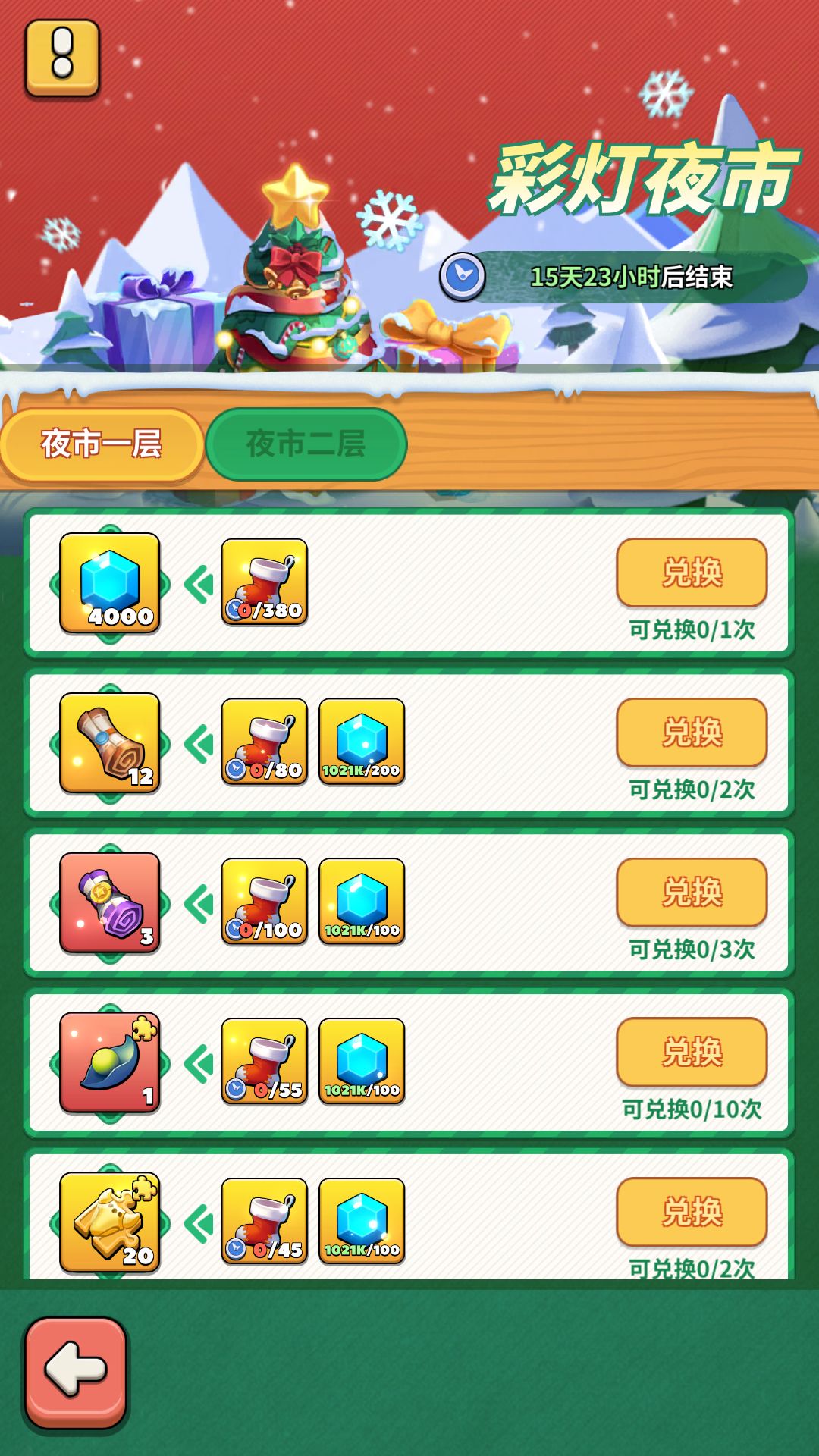 活动期间,可从多种途径获得的圣诞袜,可在夜市兑换奖励。根据每一项奖励的要求,凑齐对应的道具,即可兑换奖励。每种奖励的兑换次数限制不同,请合理规划道具消耗哦~