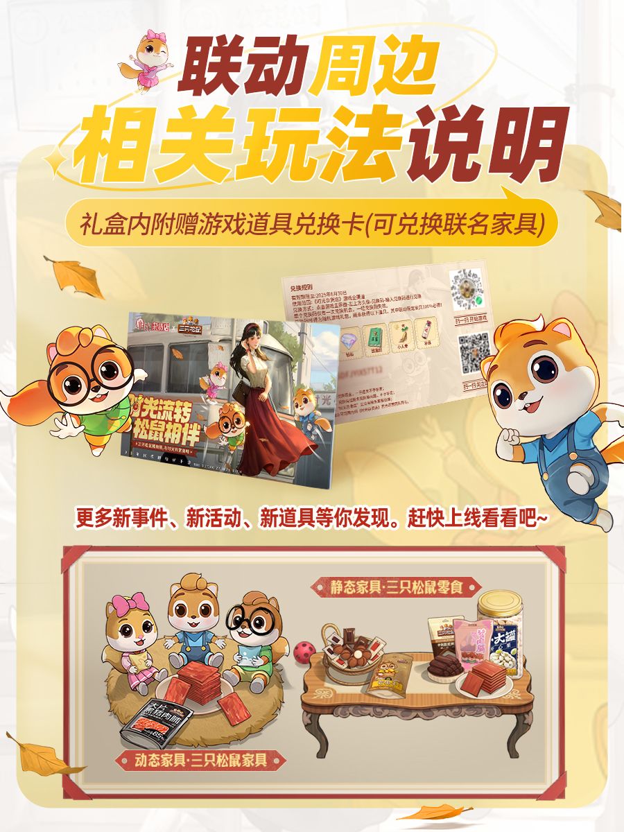 听说购买联名产品还能100%获得联动限定家具,「动态家具·三只松鼠家具」仅可通过联名礼盒内兑换卡获取噢!快来抢购「联名产品大片黑猪肉脯」,拿下三只松鼠联动家具!