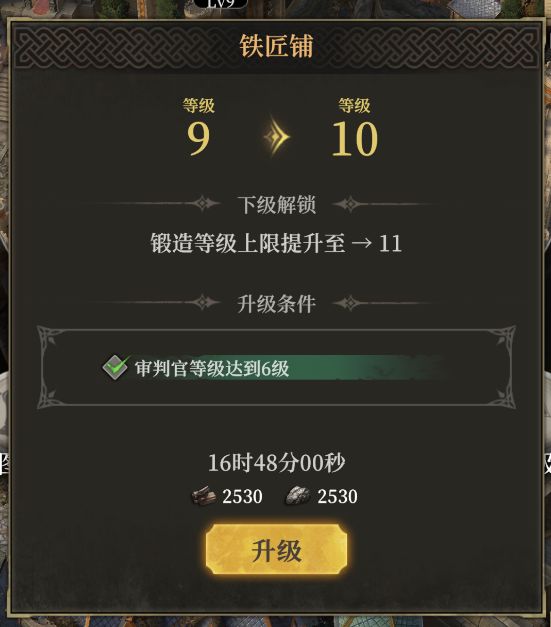 -普通的木材和石料可以升级铁匠铺,升级后我们可解锁更多图纸、提升锻造等级上限等。