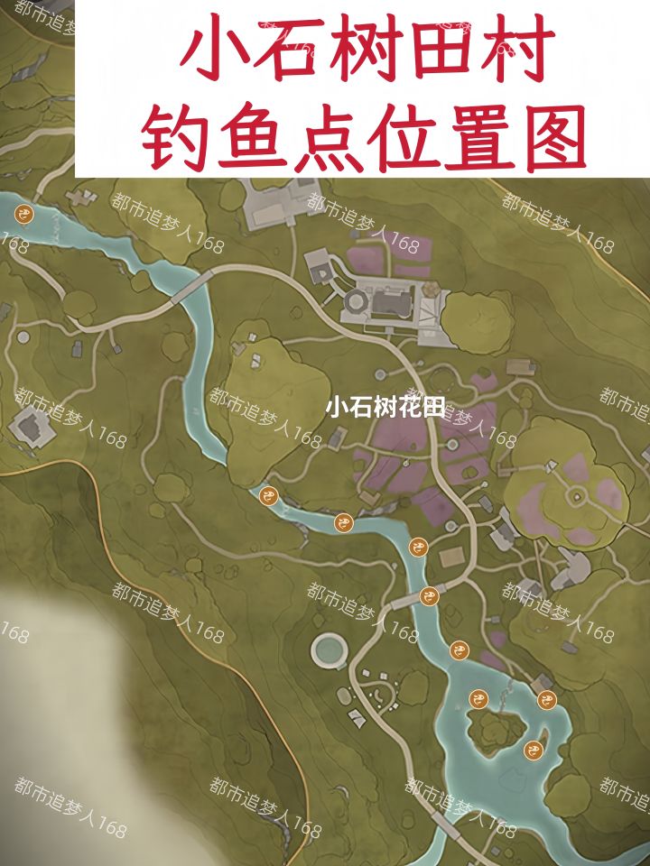 图二:小石树田村 - 钓鱼点位置分布图。