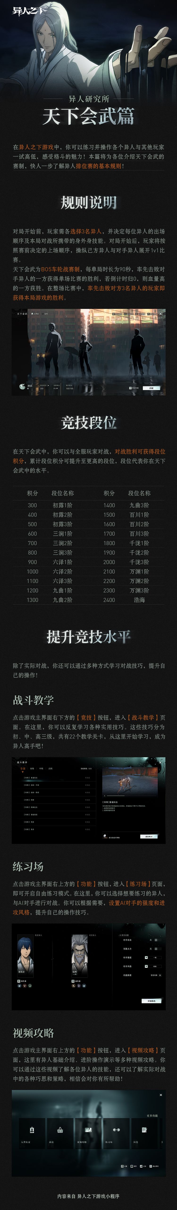 本篇将为各位介绍天下会武的赛制,快人一步了解异人排位赛的基本规则!