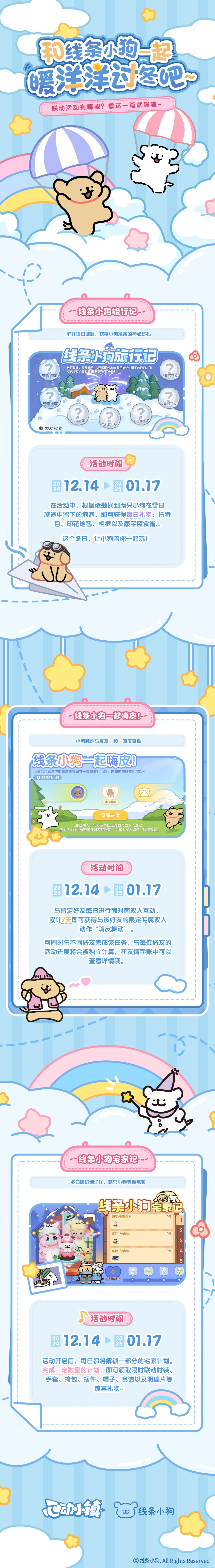 12月14日至1月17日,线条小狗联动即将开启,马尔济斯和小金毛等不及要来小镇上玩耍啦~