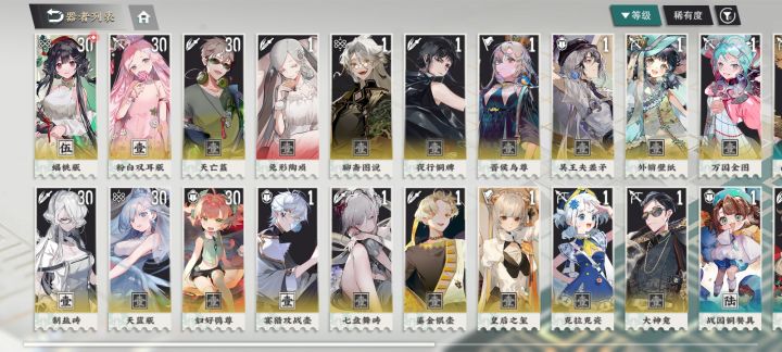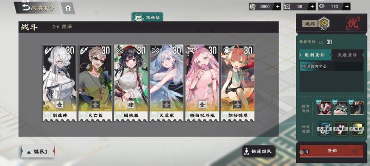 言归正传,第一张图是我现在开荒的阵容,目前为止都是30级的,况且新手前期我只建议养到30级(因为30级还能重置,有些角色不是很好用,但是前期又不得不用)