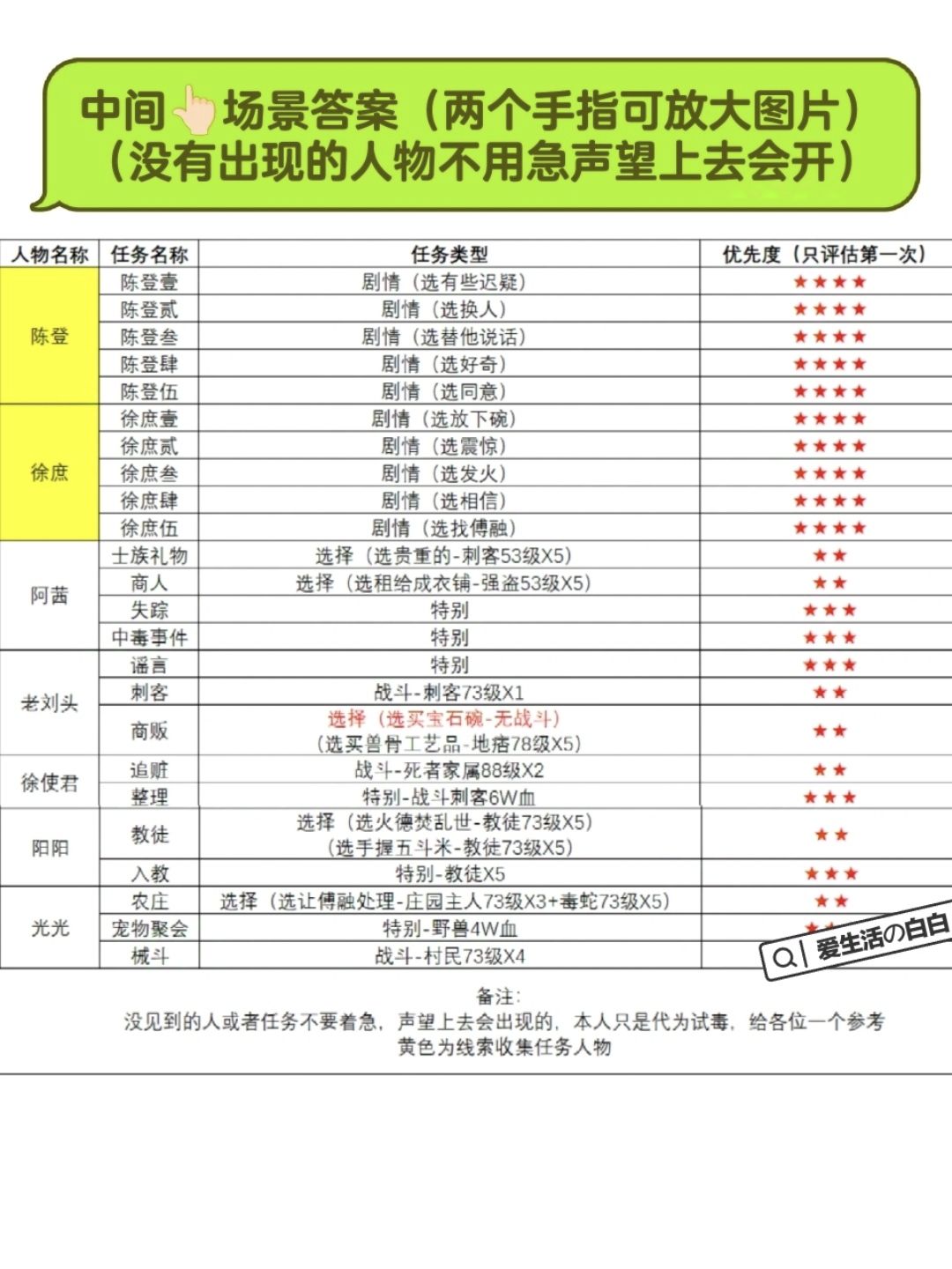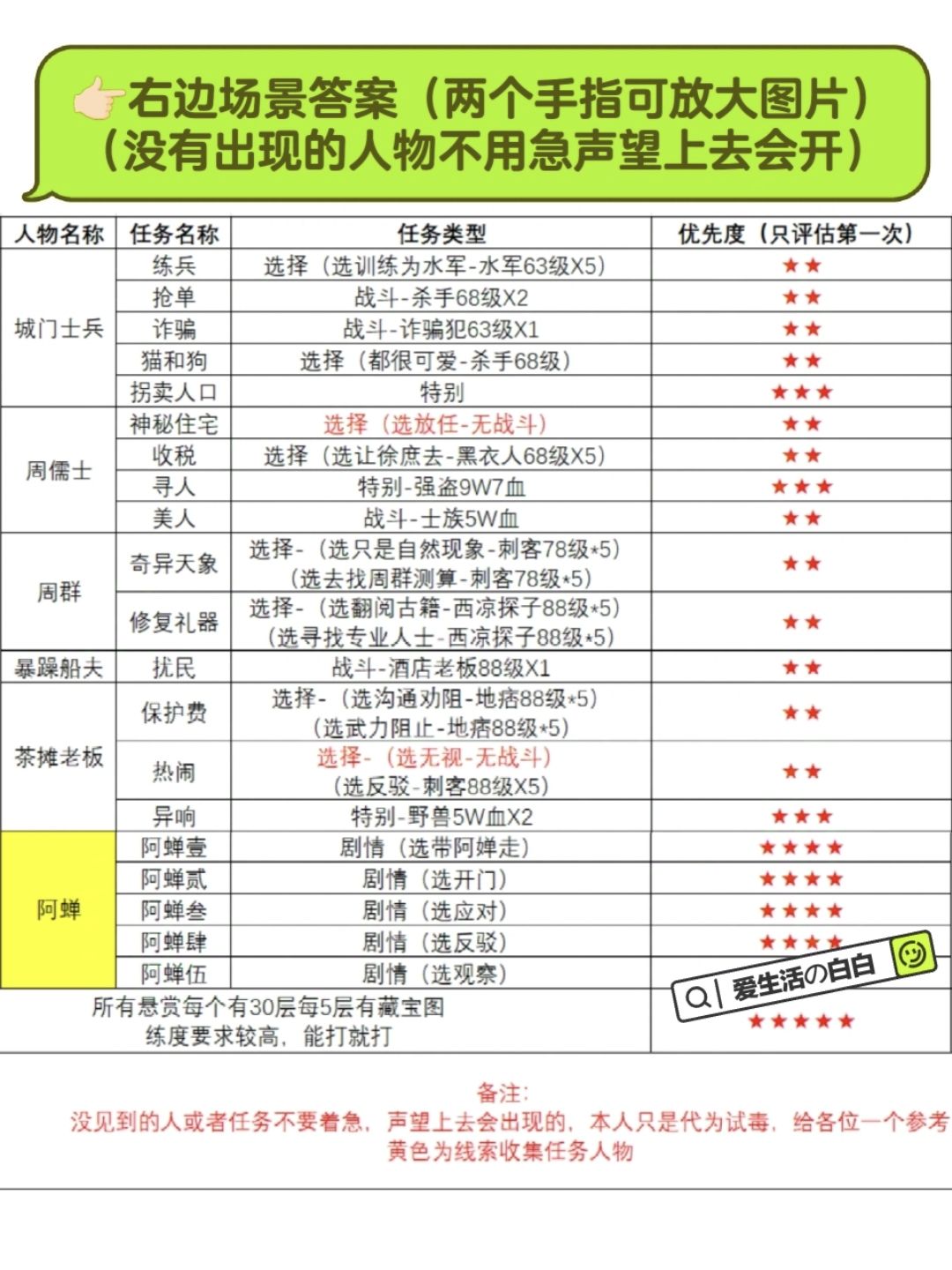 省流版-这次活动的本质就是把图上各种人物的❗解决即可(图的最后已经附上最高声望的全部答案,🉑直接抄答案⚠️强调一下,答案里没有的NPC不用着急,是因为声望没到没有触发,做几天任务就好
