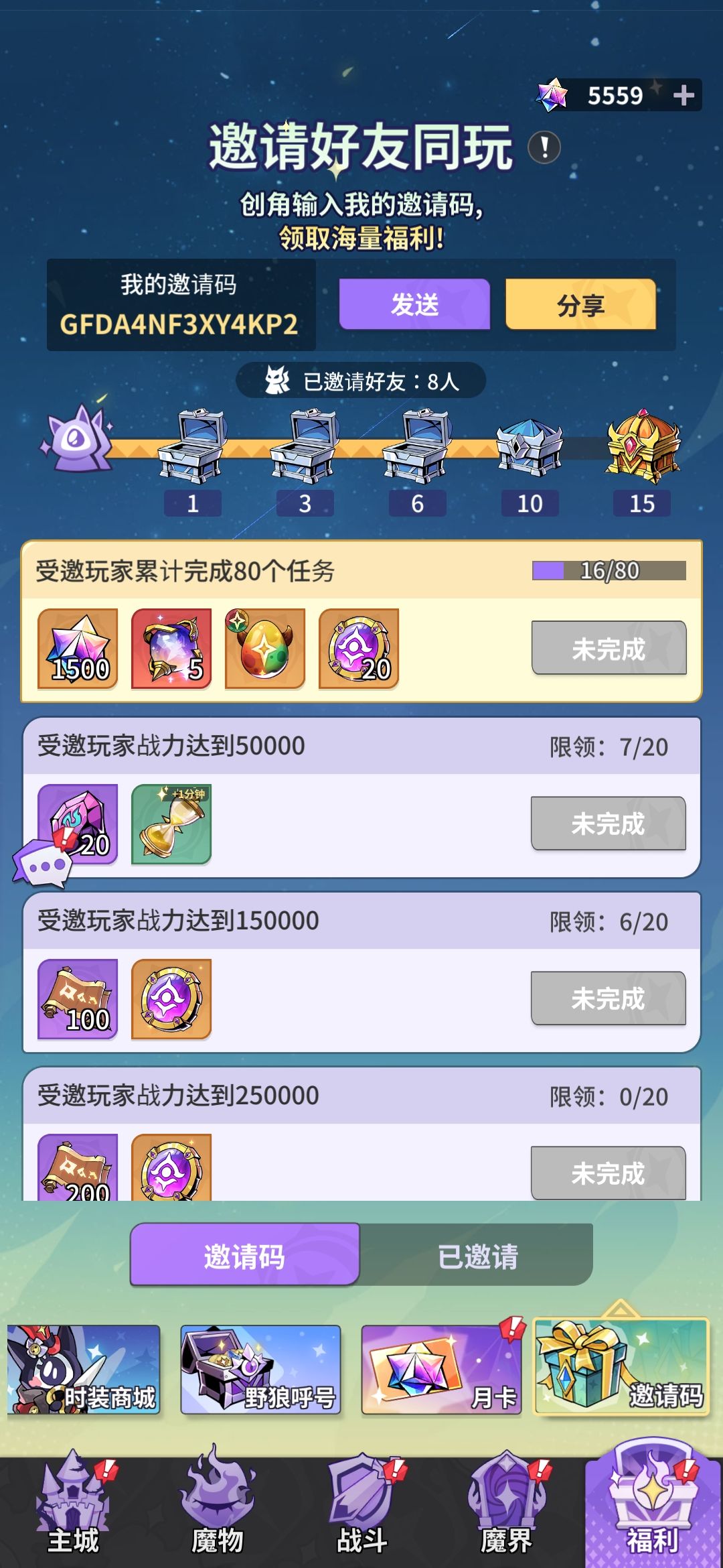 邀请码复制粘贴领取十连抽必出五星角色,大家来一起