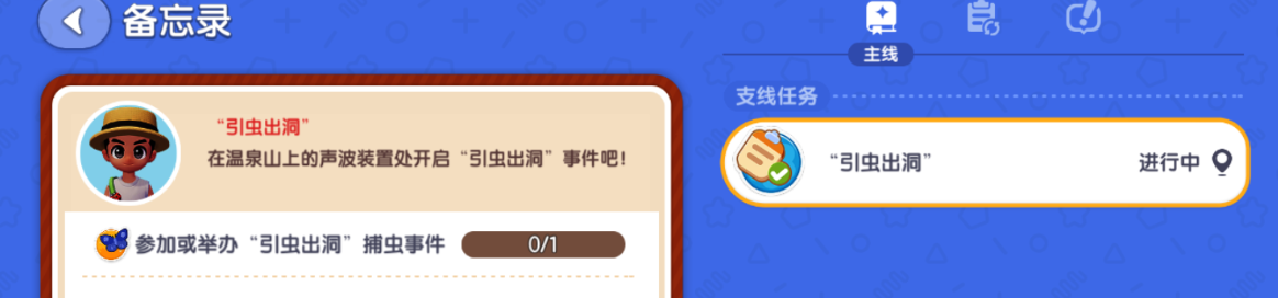 可以找大喇叭对话参加或者举办捕虫事件啦~注意不要跑丢了,有范围的,出了范围会自动离开事件哦!