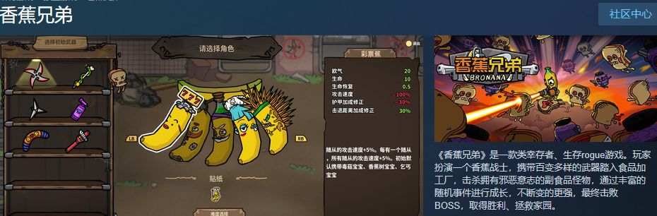 《土豆兄弟》的兄弟?!国产弹幕肉鸽《香蕉兄弟》Steam正式登场